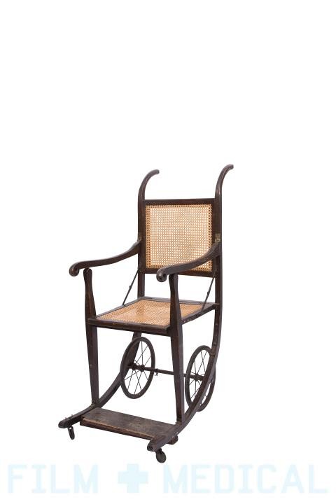 Unusual wood and wicker wheelchair dating from the early 20th century. Made by Carter (J&A) Ltd, and called the "Carstairs". Beautiful curved wood.