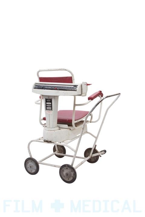 Mid 20th century seated patient weighing scale.