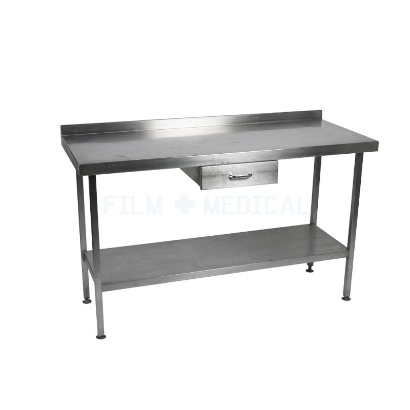 Steel Table With Draw for hire. Film Medical have a large selection of Tables Trolleys and Carts props for hire. We have tables trolleys and carts props available which might not be shown on our online prop listing. Please contact us for more details of our stock.